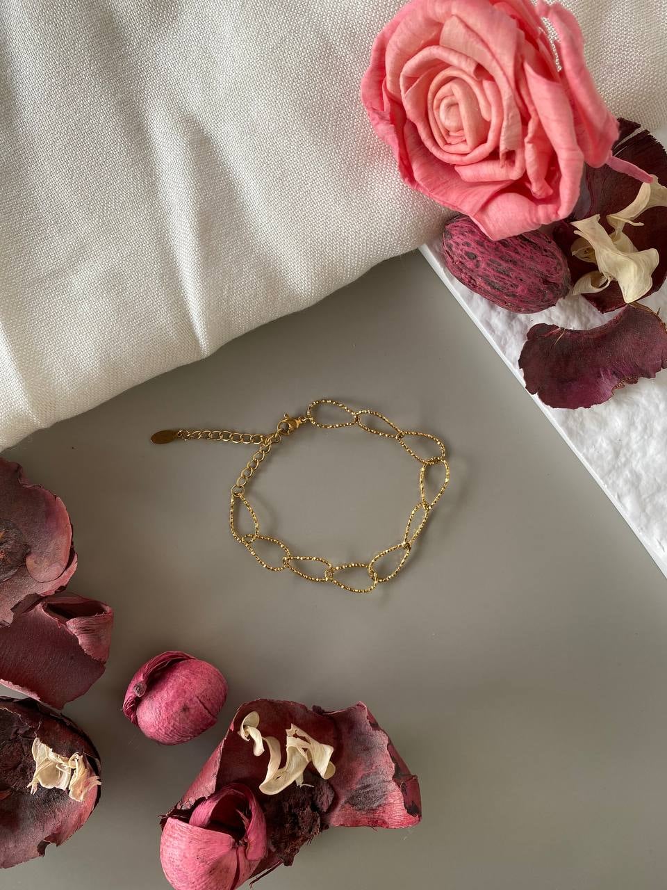 Το βραχιόλι Royal Chain είναι μια χειροποίητη αλυσίδα από ανοξείδωτο ατσάλι σε χρυσό τόνο, με κομψούς οβάλ κρίκους. Ένα κλασικό κόσμημα που αποπνέει λαμπρότητα και φινέτσα, ιδανικό για να συνοδεύσει κάθε περίσταση.