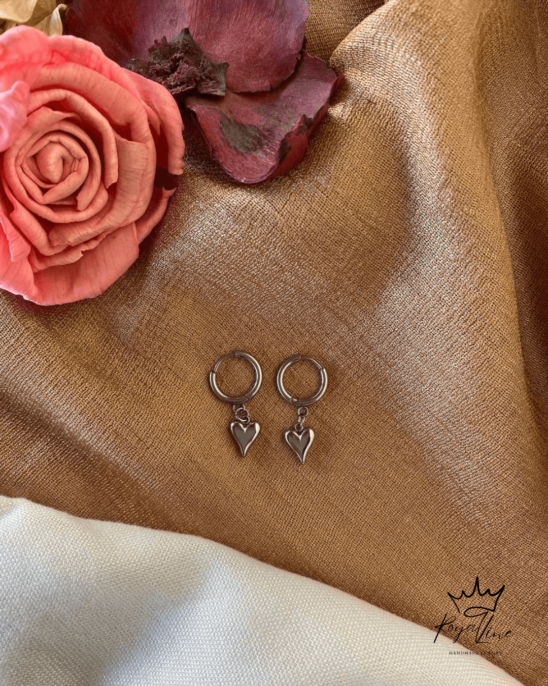 Κλασικοί ατσάλινοι κρίκοι με κρεμαστό μοτίφ καρδιάς σε natural απόχρωση. Καθαρή, διαχρονική γραμμή που «γράφει» από πρωί έως βράδυ, ενώ το μικρό μέγεθος τα κάνει ιδανικά για καθημερινό styling ή για συνδυασμούς σε πολλαπλές τρύπες!