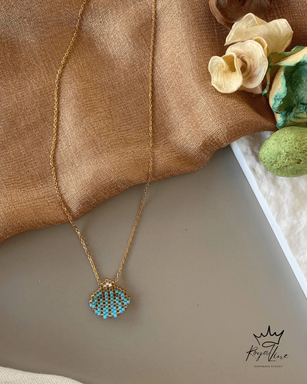 Το Miyuki Shell είναι ένα κομμάτι με ξεκάθαρο “seaside” χαρακτήρα και πολύ καθαρή αισθητική. Το κεντρικό στοιχείο σε σχήμα κοχυλιού είναι χειροποίητο με την τεχνική Miyuki, χρησιμοποιώντας ιαπωνικές χάντρες ακριβείας για τέλειες γραμμές και λεπτομέρεια.