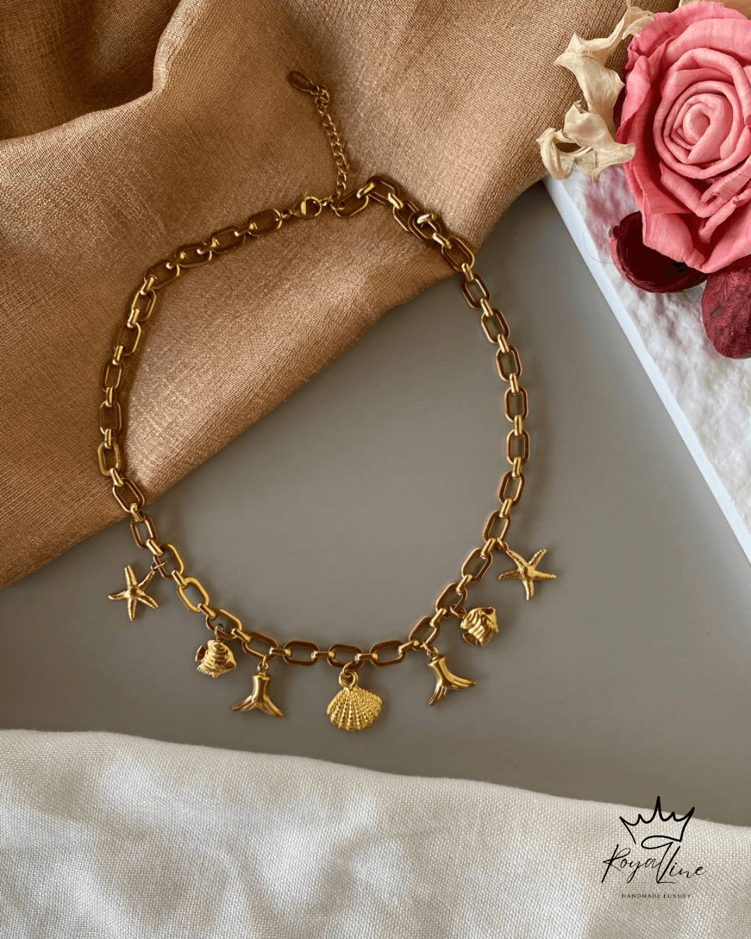 • Στοιχεία: Chunky αλυσίδα με charms (αστερίες, κοχύλια, ουρές γοργόνας)